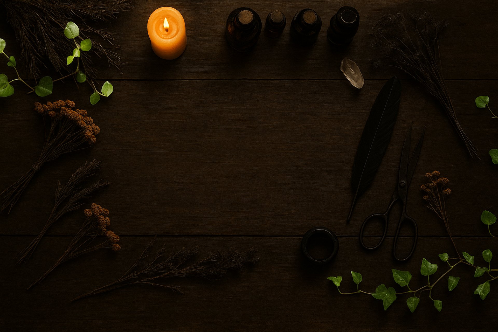 Trabajo con cristales, aceites esenciales, inciensos y correspondencias mágicas de plantas.